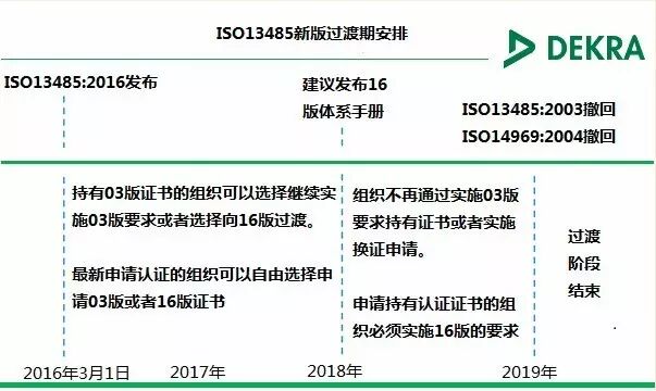 目前根據討論的要求, 2003版的ISO13485將在新標準發布后3年失效,建議在2016版2年內完成過渡期,2018年以后企業不再運行2003版的要求。具體的過渡安排見下表: