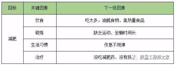 小A是個胖妞,天天喊著減肥,但是天天大魚大肉,飲食作息無規律,不愛運動,能躺著絕不坐著,能坐著絕不站著,最終減肥的夢想一天天被擱置,體重反增無減。減肥失敗的原因,我們可以整理出以下表格: