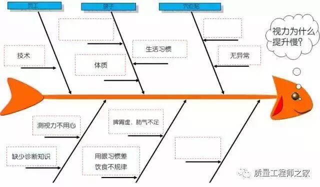 因其形狀如魚骨,所以又叫魚骨圖(以下稱魚骨圖),它是一種透過現象看本質的分析方法。 同時,魚骨圖也用在生產中,用來形象地表示生產車間的流程。