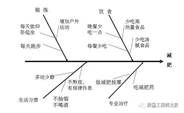 a、確定大要因(大骨)時,現場作業一般從“人機料法環”著手,管理類問題一般從“人事時地物”層別,應視具體情況決定。