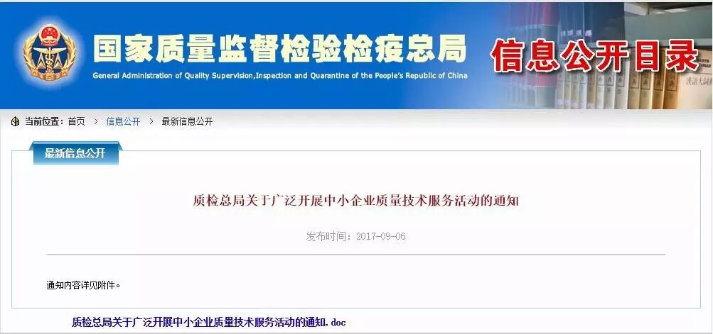 質檢總局關于廣泛開展中小企業質量技術服務活動的通知 (國質檢質函〔2017〕464號) 各直屬檢驗檢疫局,各省、自治區、直轄市及新疆生產建設兵團質量技術監督局(市場監督管理部門),認監委、標準委,總局各司局,各直屬掛靠單位,各有關單位: 為貫徹落實黨中央、國務院關于開展質量提升的指示精神,堅持問題導向,突出補短板、抓弱項,從生產一線的源頭夯實質量提升基礎,經研究決定在全國范圍開展以“服務零距離、質量零缺陷”為主題的中小企業質量技術服務活動(以下簡稱“雙零”活動)。現就有關事項通知如下: 一、目的意義 中小企業是我國國民經濟和社會發展的重要組成部分,對促進經濟增長,擴大就業,改善民生福祉具有重要意義。中小企業既是提供產品和服務的市場主體,也是質量提升的責任主體,當前存在著質量管理水平偏低、技術創新能力不足,產品和服務競爭力不強、質量技術基礎薄弱等問題,影響了經濟持續健康發展。在供給側結構性改革的關鍵時期,全國質檢系統要主動作為,將“雙零”活動作為質量提升的重要內容,結合各自職能和技術優勢,針對中小企業質量發展中的難點和痛點,實施精準幫扶,助力中小企業加強全面質量管理,提升整體質量水平,凸顯質量效益,增強社會質量獲得感。 二、活動內容 (一)摸清企業質量需求。采取問卷調查、企業調研、召開座談會等多種形式,開展中小企業質量需求摸底調查,了解本地區、重點行業中小企業規模、數量、產業結構等基本情況,掌握企業質量技術基礎和質量管理狀況,找準中小企業質量短板,提供有效的質量問題解決方案。 (二)幫扶企業升級質量基礎。免費開放中國標準服務網,公開廚具、床上用品、電飯煲、兒童玩具、家具、空氣凈化器等大宗消費品相關標準全文。通過全面實施企業產品和服務標準自我聲明公開制度和建立推行企業標準“領跑者”制度,支持企業參與標準化活動,鼓勵企業主動創新、制定和實施高標準。開展計量精準施“測”服務,針對企業在質量控制、分析測試、儀器儀表檢定校準方面存在的問題,開展產品全壽命周期、全過程、個性化的測量服務。加強為中小企業開展檢定和校準服務,引導企業完善測量管理體系,健全計量管理制度。積極開展能源計量審查,幫助企業節能降耗。在產業聚集區和老少邊窮地區,優化工業產品認證檢測資源的配置和布局,縮短認證周期,降低認證成本。在集中連片特困地區、扶貧工作重點縣及新疆、西藏、青海等貧困地區,探索減免有機產品認證費用。 (三)服務企業技術創新。公開國家質檢中心資質認定信息,開放國家計量基標準資源平臺和公共檢驗檢測服務平臺,以非盈利方式為企業提供質量技術支撐。鼓勵更多符合要求的企業參與計量、標準化、認證認可、檢驗檢測領域國家有關科技計劃的研究和示范應用。在現有減免措施基礎上,重點支持以高新技術為支撐的科技型企業,對困難的科技型小微企業,進一步酌減甚至免收委托檢測費用。推動計量實驗室向中小企業免費開放,成為企業研發、設計、生產的公共試驗平臺。 (四)支持企業品牌建設。幫助企業將技術和知識產權優勢轉化為品牌優勢,指導企業實施品牌戰略。鼓勵各級各類質量品牌示范區支持區內企業開展質量改進活動,打造一批質量競爭力強的“隱形冠軍”和“小巨人企業”。扶持地理標志產品企業推進標準化生產。開展品牌宣傳,傳播中國品牌好聲音。 (五)助力出口企業質量升級。密切跟蹤、評議國外技術性貿易措施,及時向企業通報和解讀國內外新技術法規和標準,幫扶企業做好國外技術性貿易措施應對。以出口產品質量安全示范區建設為載體,為園區企業提供快速備案、優先推薦注冊、便利出口檢驗、質量對標、技術支撐等服務。實施以“認證 ”為核心的出口食品企業幫扶行動計劃,幫扶企業內銷轉型。 (六)強化服務型中小企業質量管理。組織開展服務質量顧客滿意度測評,查找制約中小服務企業質量提升的短板,研究制定有針對性的幫扶政策。探索公共服務質量監測與通報制度,引導地方政府改進對中小企業的公共服務。推動實施優質服務承諾標識和管理制度,營造優質優價的競爭環境,支持中小企業快速積累質量信譽、創建知名服務品牌。實施服務質量標桿引領計劃,總結標桿企業優秀服務模式和先進質量管理方法,發揮示范帶動作用,帶動產業鏈兩端的中小企業提升質量水平。 (七)宣傳貫徹質量政策。組織策劃質量大講壇、質量知識競賽、質量管理小組、質量信得過班組、質量技術比武、誠信計量、計量服務行、標準論壇等群眾性質量活動,宣傳黨中央國務院決策部署,普及有關法律法規和質量知識,強化企業質量第一意識,厚植工匠文化。組織“質量獎宣講”“質量標桿經驗進萬企”“優化計量提質增效”“工業計量標桿示范”等質量宣講活動,加大先進質量管理方法特別是中國質量管理創新成果宣傳力度。 (八)開展質量培訓咨詢。通過多種形式,為中小企業開展提供質量管理、標準、計量、認證、技術性貿易措施、實驗室建設等咨詢和培訓服務,全面提升中小企業的質量意識和質量管理水平。選擇一批發展潛力較大的中小企業,組織質量專家有針對性地開展質量診斷和技術咨詢,實現上門服務。 (九)優化質量政務服務。通過門戶網站