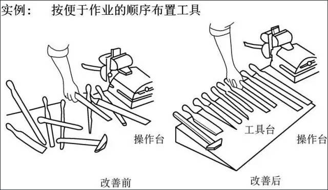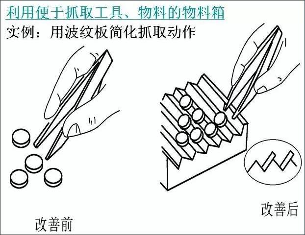 動作經濟原則定義 1. 生產三要素:人、機器和物料 2. 動作經濟原則的理念:為了以最低限度的疲勞獲取最高的效率,尋求最合理的動作作業時應遵循的原則。根據這些原則,任何人都能檢查作業動作是否合理。 動作經濟的四條基本原則 1. 減少動作數量 2. 雙手同時作業; 3. 縮短動作的距離; 4. 輕松作業。 動作經濟原則的作用 1. 發現作業動作中不滿足動作經濟原則之處,取消動作中存在的不合理、不穩定和無用的動作; 2. 取消作業中容易造成疲勞和失誤的因素,使操作者保持良好的狀態,有節奏的進行作業; 3. 掌握動作經濟原則,提高動作意識、問題意識和改善意識,經常構思和運用高效的作業分析。 基本原則一的應用:減少動作數 1. 關于動作方法 2. 關于作業現場布置 3. 關于工夾具與機器 基本原則二的應用:雙手同時進行動作 1. 關于動作方法 2. 關于作業現場布置 3. 關于工夾具與機器